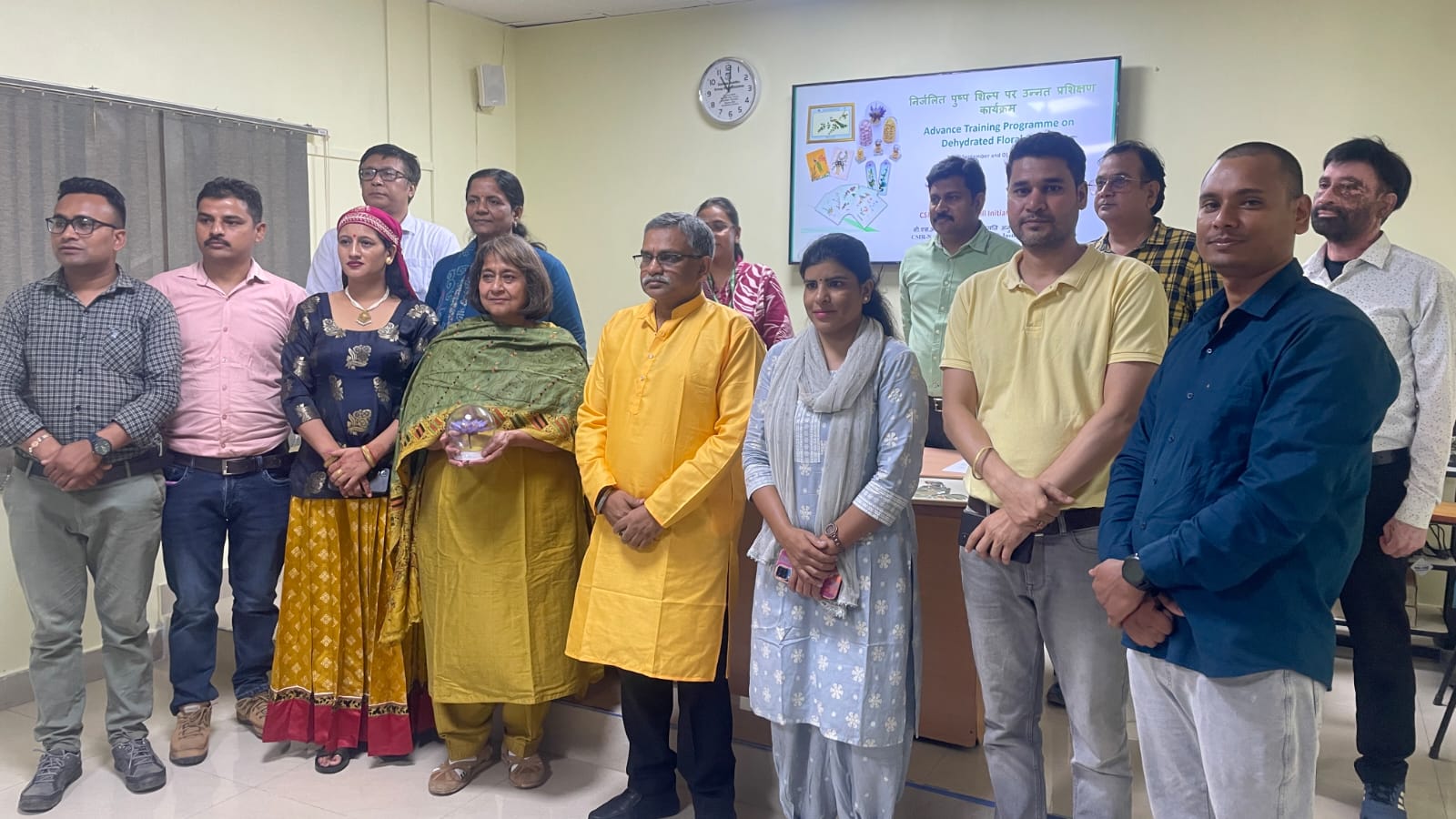 जलागम प्रबंधन निदेशालय, देहरादून से ग्रीन-एजी परियोजना के प्रतिनिधियों ने 29 सितम्बर से 1 अक्टूबर 2025 तक राष्ट्रीय वनस्पति अनुसंधान संस्थान (NBRI), लखनऊ में आयोजित तीन दिवसीय निर्जलित पुष्प शिल्प पर उन्नत प्रशिक्षण में सक्रिय सहभागिता की। यह प्रशिक्षण CSIR-NBRI द्वारा फ्लोरीकल्चर मिशन के तहत आयोजित किया गया था, जिसका उद्देश्य ग्रामीण महिलाओं और किसानों को फूलों के पुनः उपयोग की तकनीक सिखाकर स्वरोजगार एवं आजीविका संवर्धन के अवसर उपलब्ध कराना है।