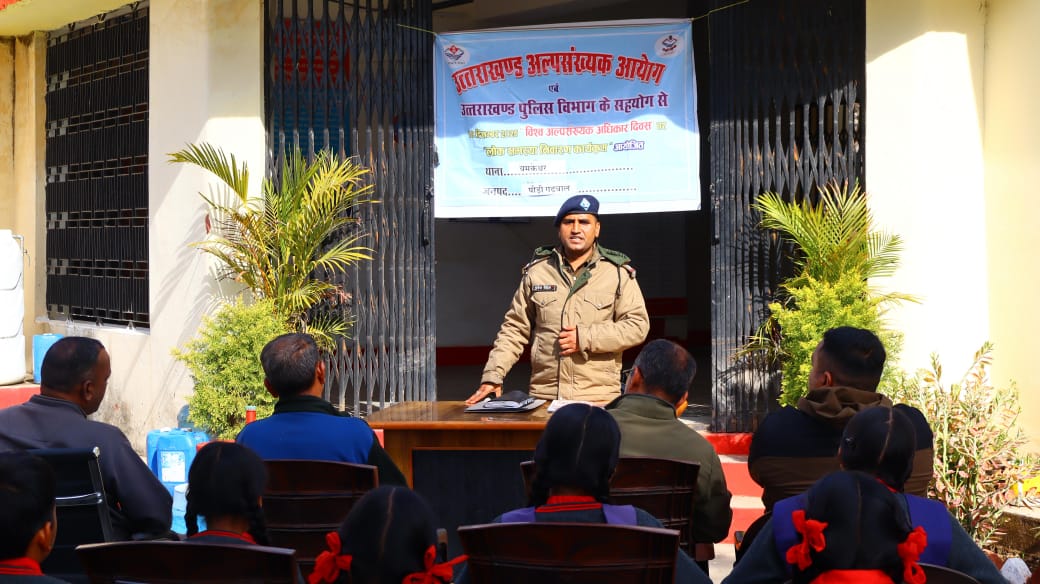 विश्व अल्पसंख्यक अधिकार दिवस के अवसर पर थाना यमकेश्वर में एक महत्वपूर्ण गोष्ठी का आयोजन किया गया। इस गोष्ठी में SI मुकेश गैरोला ने अल्पसंख्यक नागरिकों और स्कूली बच्चों की समस्याएं सुनी और उन्हें उनके अधिकारों के बारे में विस्तृत जानकारी दी।